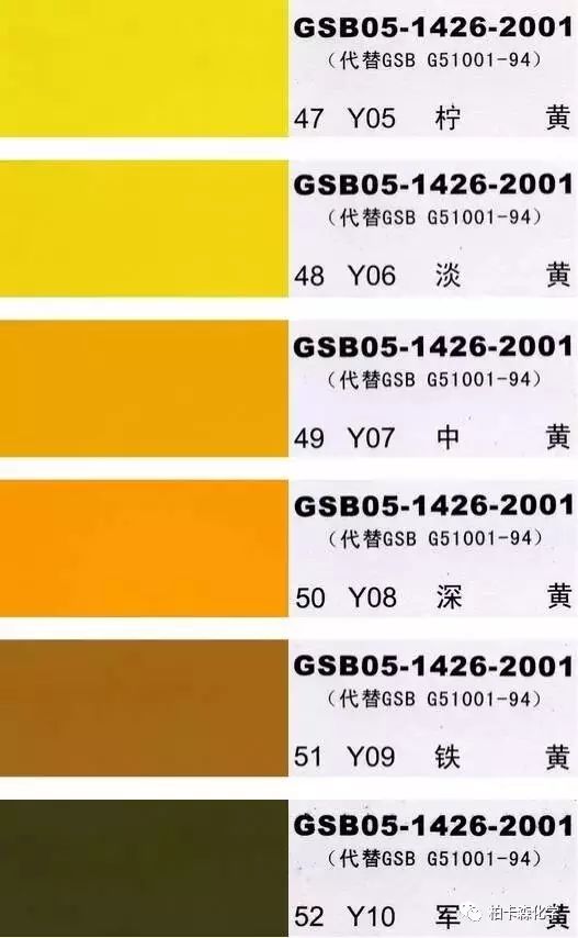 GSB05-1426-2001;全國涂料和顏料標(biāo)準(zhǔn)化技術(shù)委員會(huì)修訂,含83種顏色,光面效果。每個(gè)顏色都有國家統(tǒng)一標(biāo)準(zhǔn)的編號(hào),適用于油性涂料方面使用。